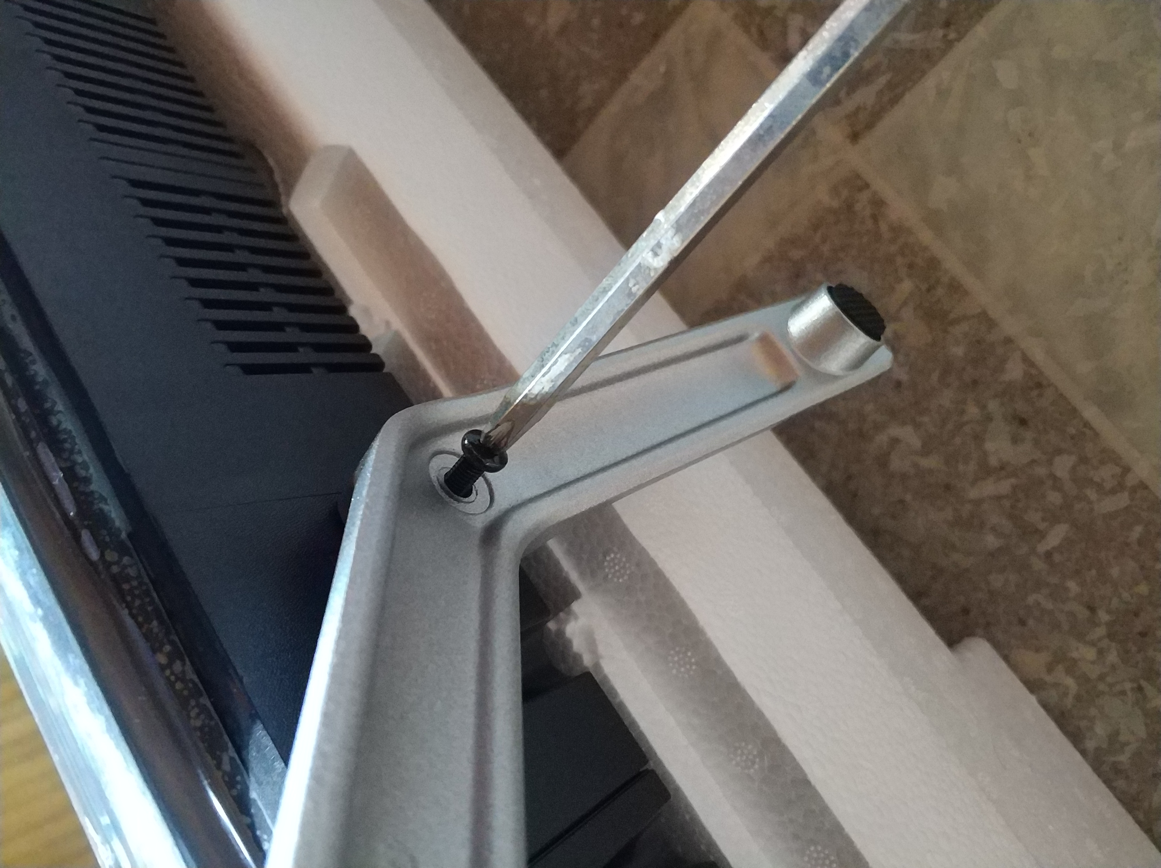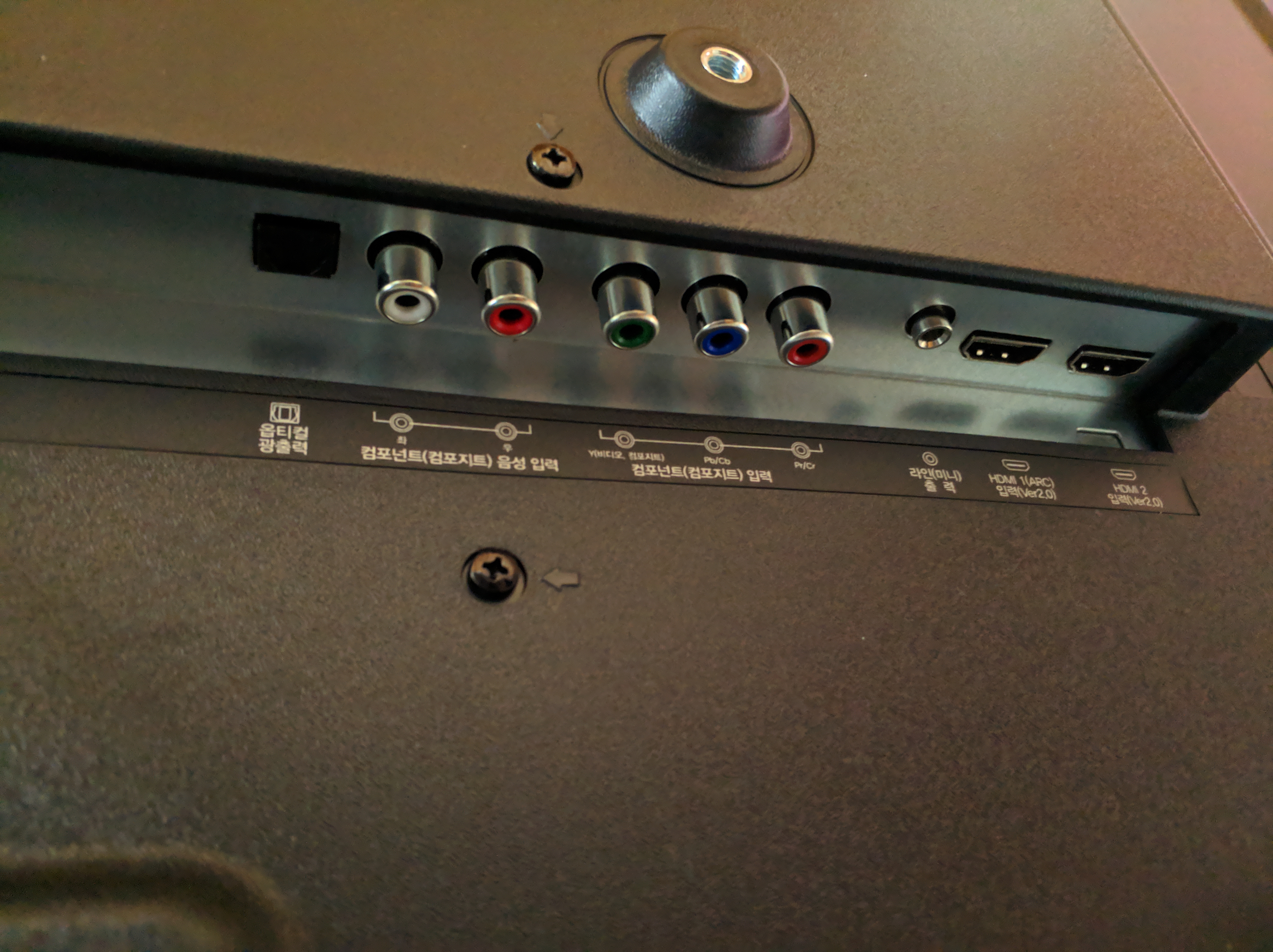 옛날에 쓰던 TV들은 이런 V자형 다리가 아니라, 중앙에 설치하는 큰 사각 판형이어서 이런 다리는 처음 설치해봤네요.