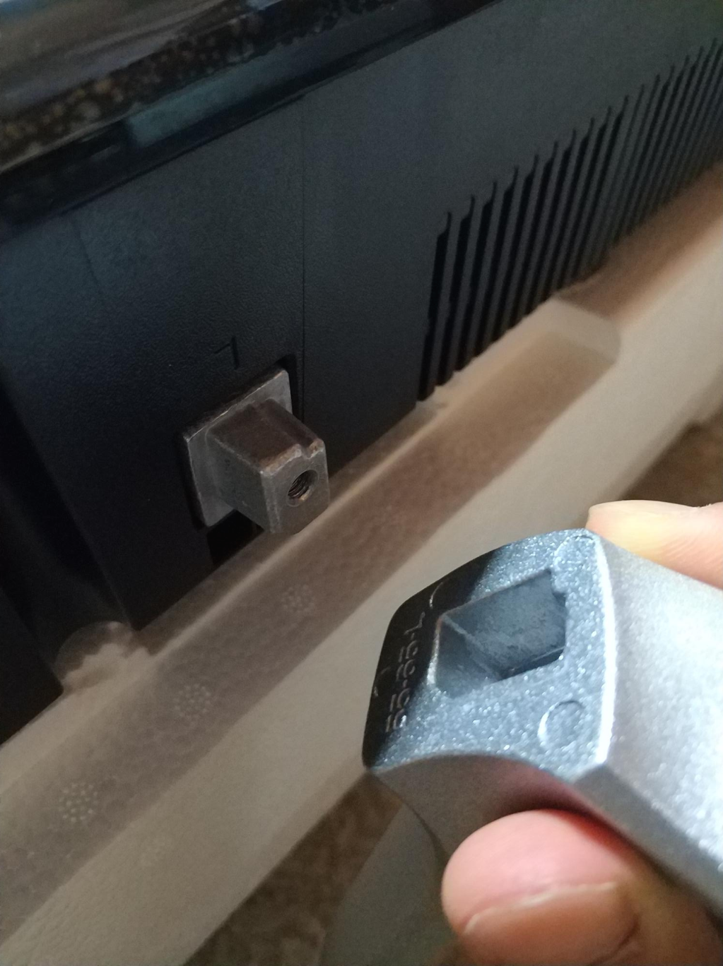 받침대랑 TV 밑쪽에 보면은 파져 있는 모양이 다른데, 이걸 보고 맞춰서 끼운 다음에 구성품에 있던 나사를 드라이버로 조으면 끝입니다!