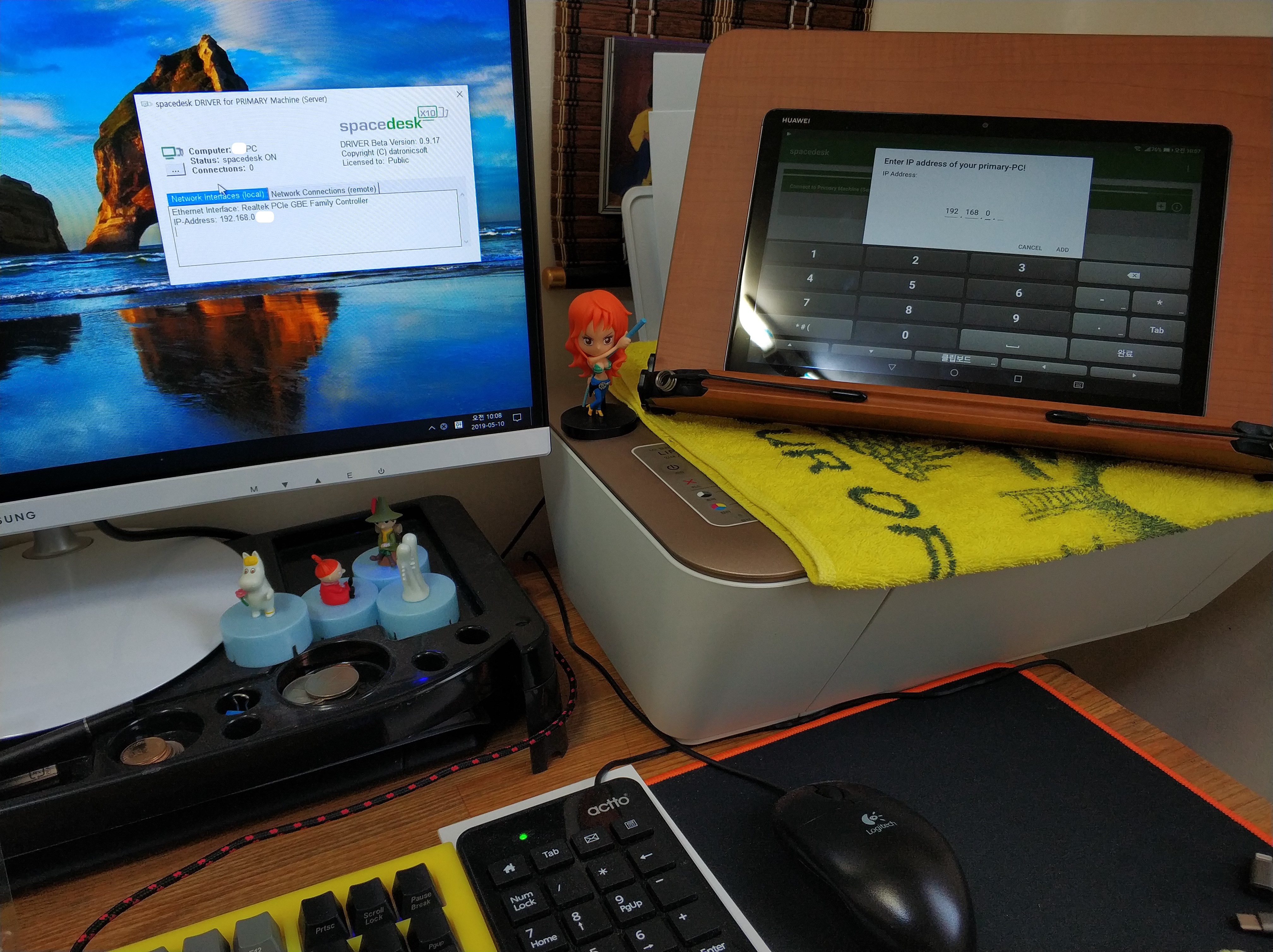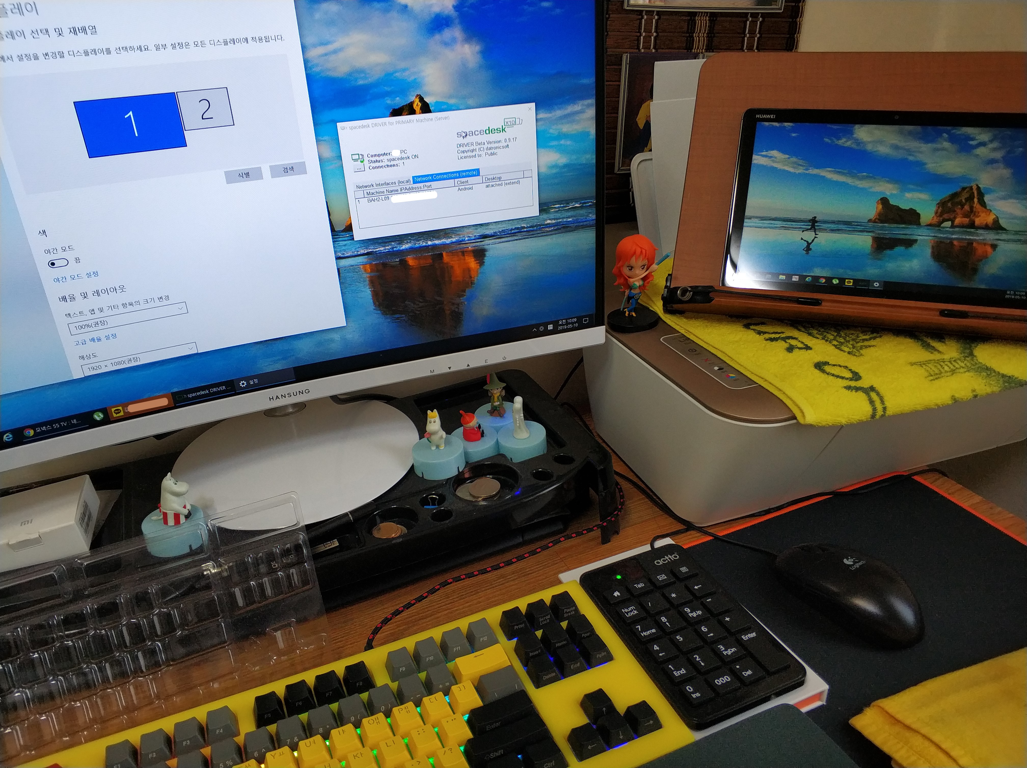 Space desk 프로그램 및 어플로 PC모니터와 태블릿, 듀얼 모니터로 구성이 가능합니다.