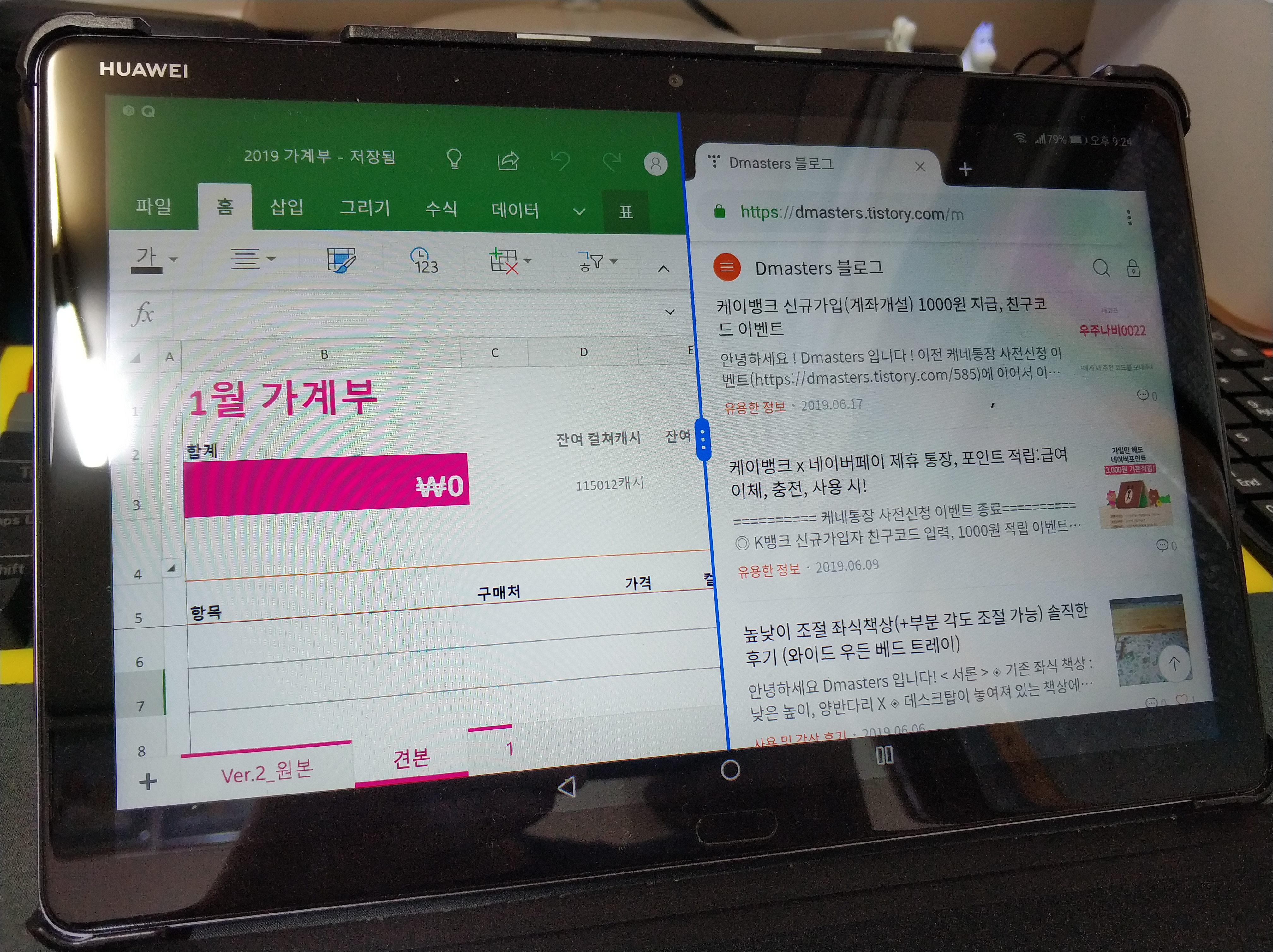 꽤 유용합니다. 더군다나 10.1 인치로 화면 자체가 크다보니, 가로 화면으로 화면 분할해서 사용하니 화면이 작아 불편하다는 느낌 없이 분할 기능을 사용할 수 있다는 점이 좋았습니다.