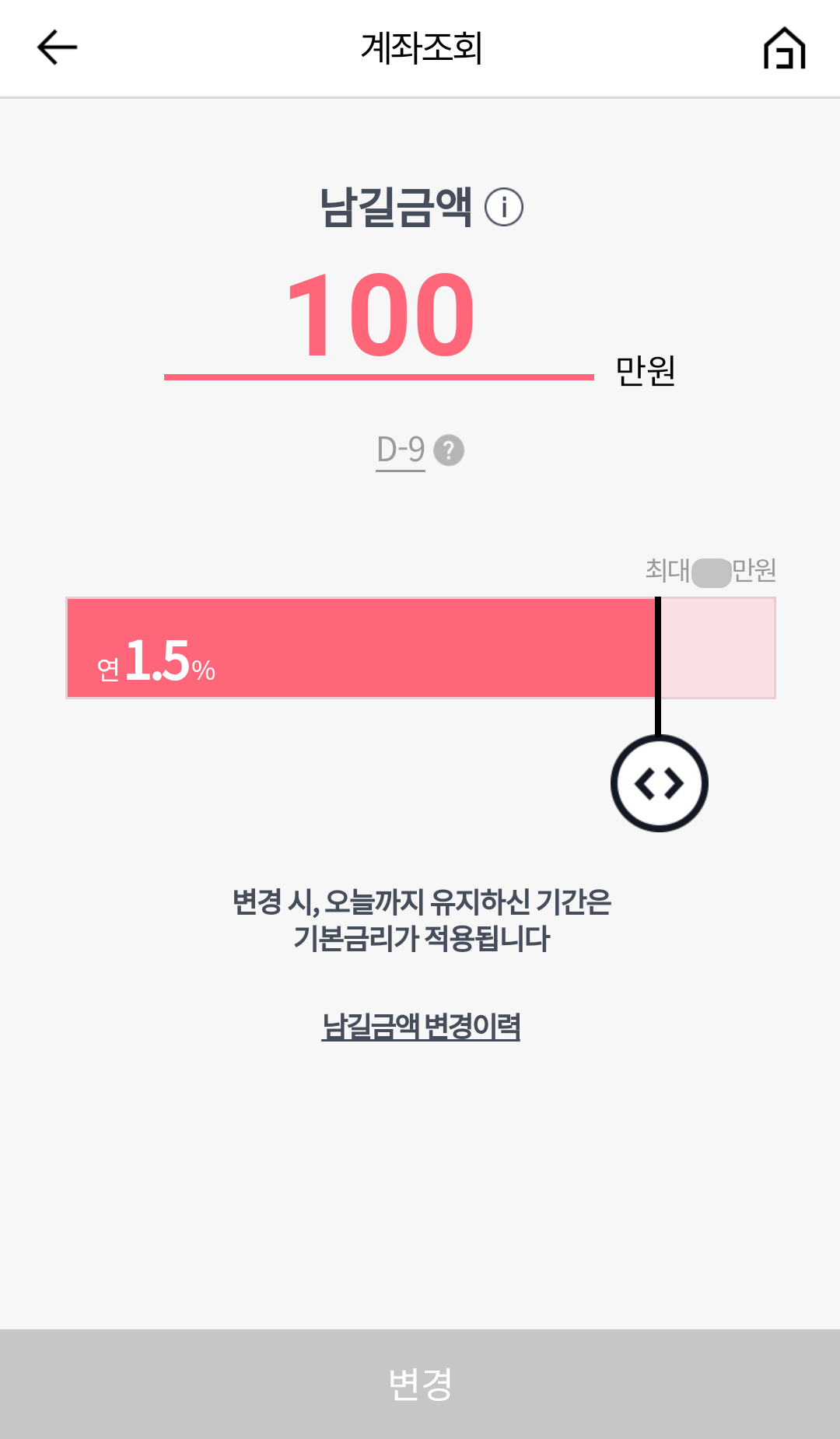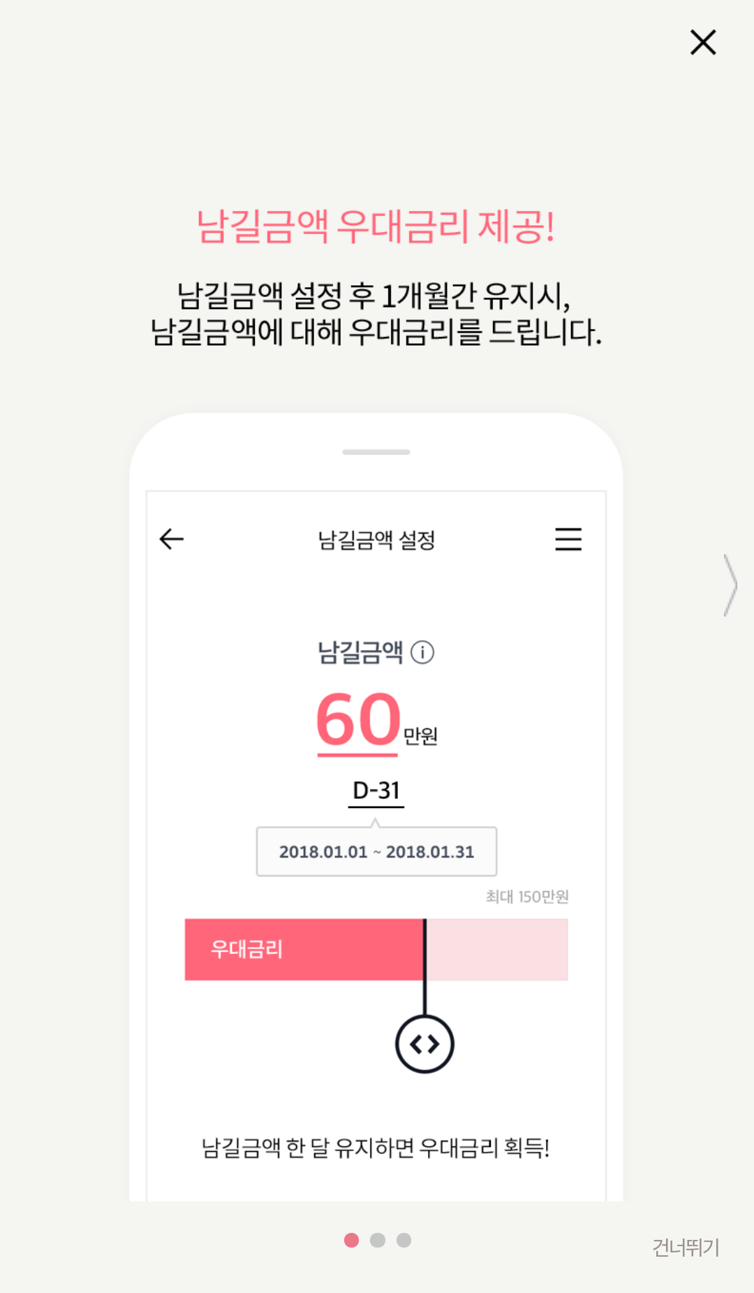 1. 남길금액 설정(우대금리 연 1.5% 적용, 1달 유지완료 후 이자 즉시지급)