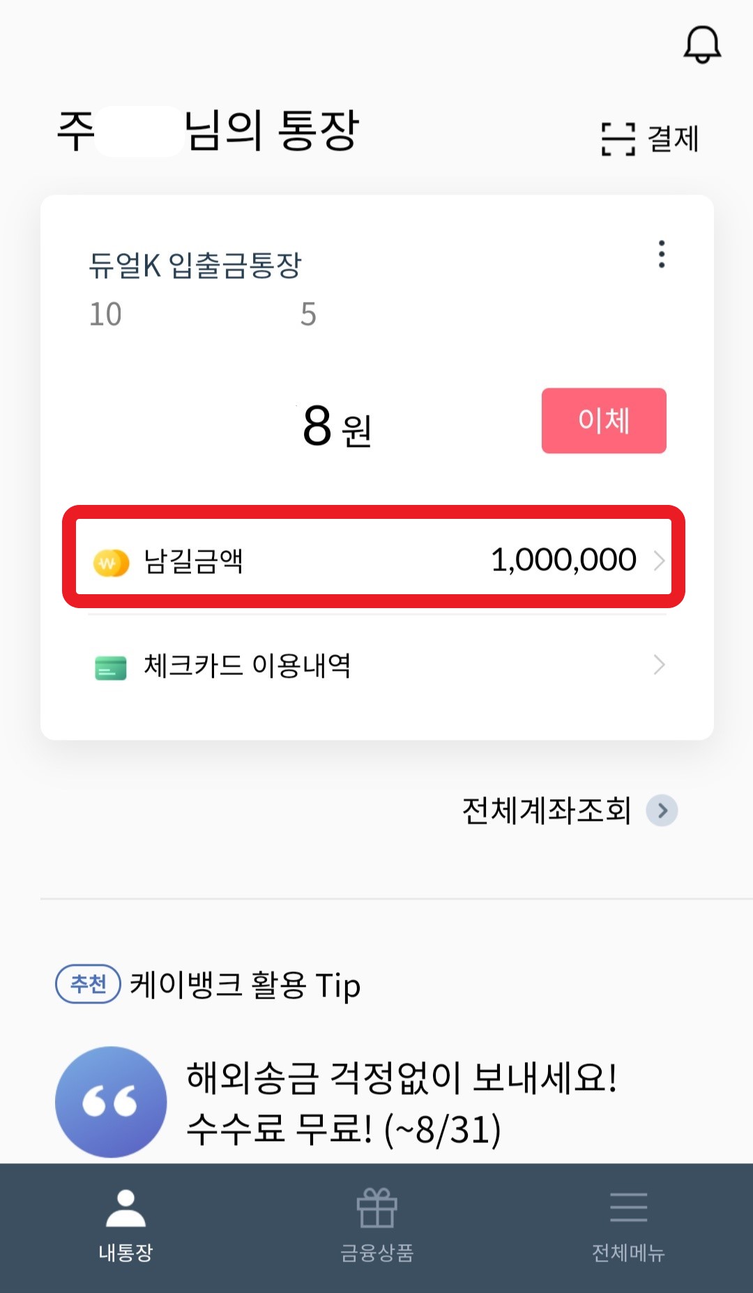 카카오뱅크의 경우에는 저는 소량의 진짜 비상금만 세이프박스에 보관해서 쓰고 나머지는 싹다 케이뱅크를 이용하고 있네요.
