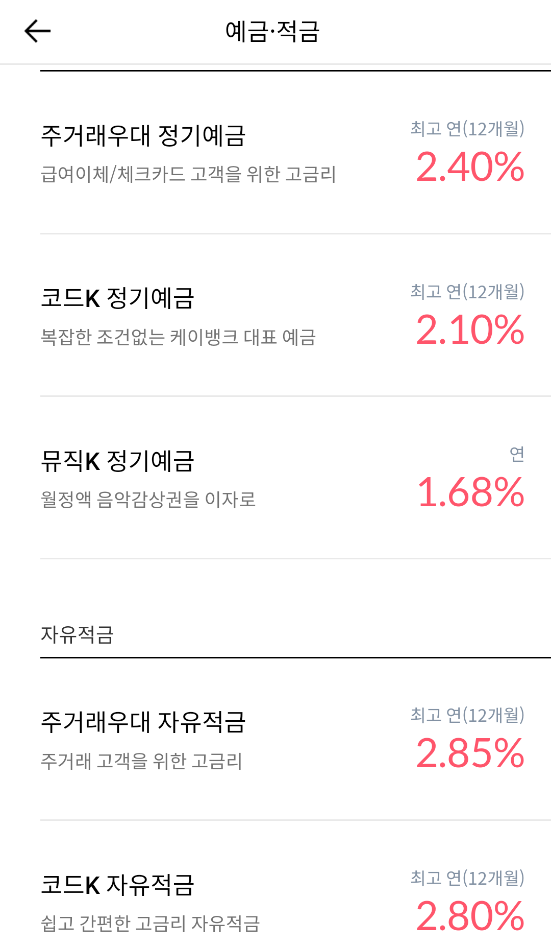 1) 타은행(농협, 신한, 하나 등) 대비 높은 금리의 정기예금-적금, 자유적금