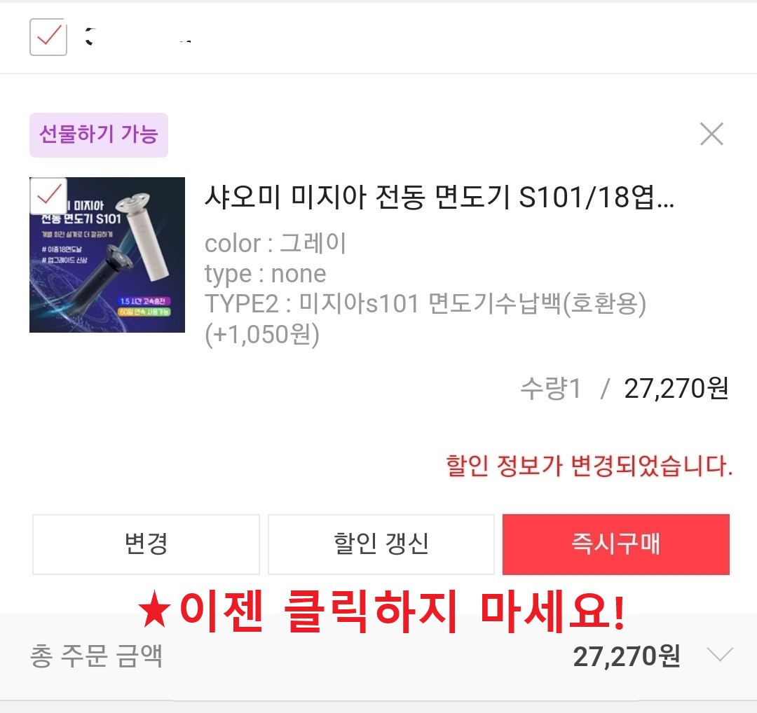 (★ 이때 부터는 할인 갱신 버튼을 누르시면 안됩니다.)