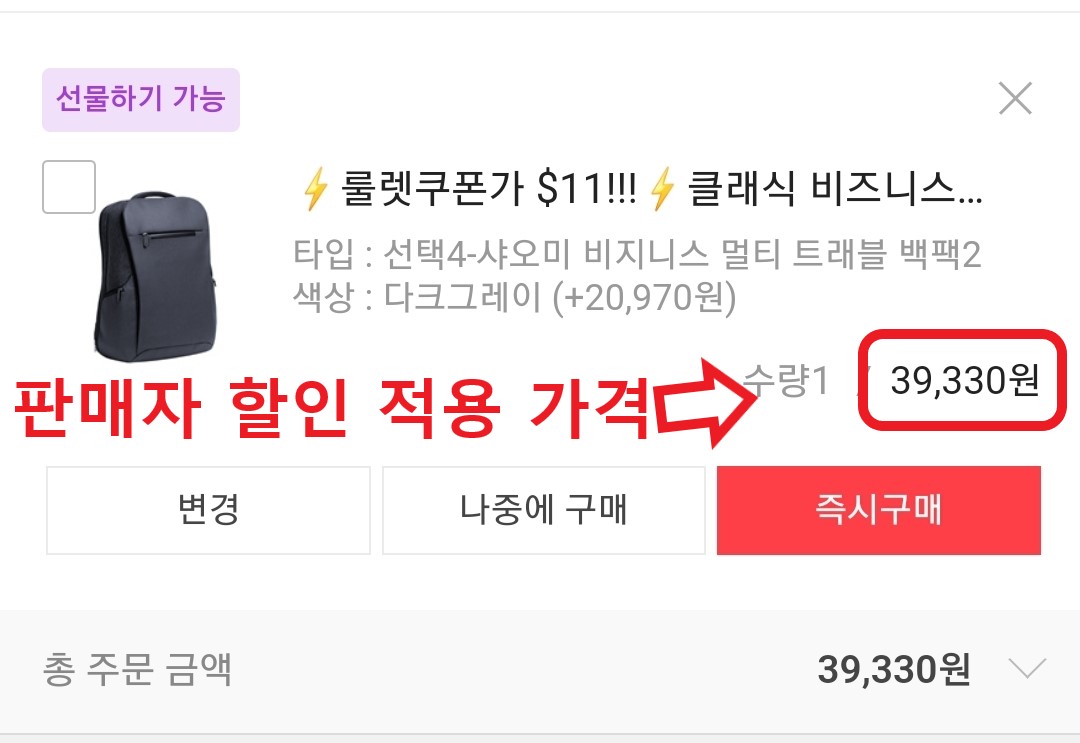 그렇지만 판매자 할인이 적게 들어간 상품의 경우에는 이 방식으로 구매하시면 비교적 큰 할인 혜택을 적용받을 수 있으니 참고해주시면 좋을 것 같습니다.