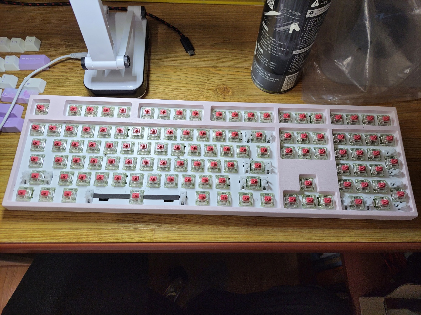 이제 분사 테스트까지 다 마쳤다면 전체 키캡을 분리하시고 윤활 작업을 시작하면 됩니다.