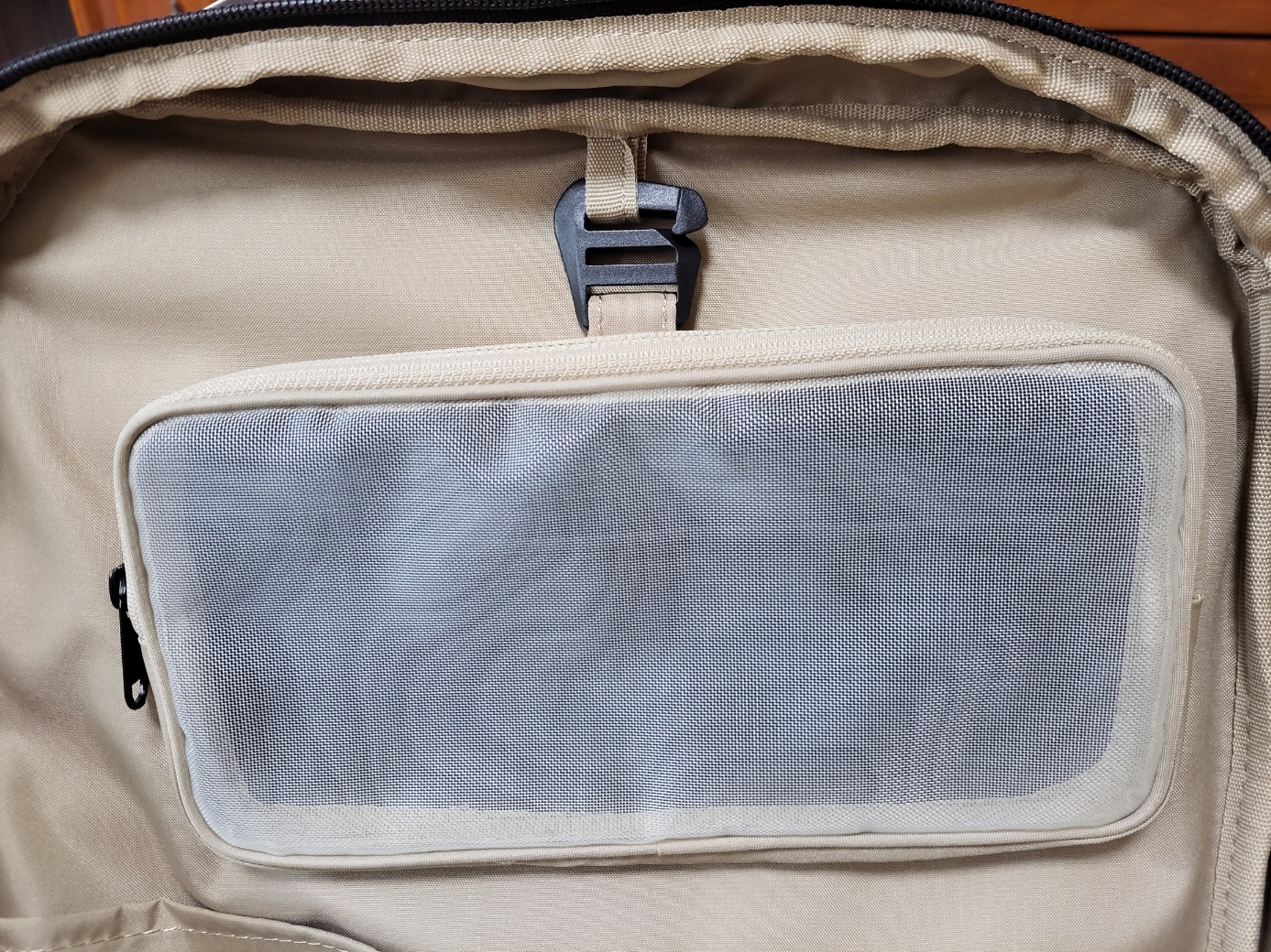 여기에도 지갑 같은 걸 보관하기에 적합할 것 같아요. 기존에 쓰던 비즈니스 백팩에서도 이 부분에는 전 항상 신분증하고 지갑을 보관했거든요ㅎㅎ