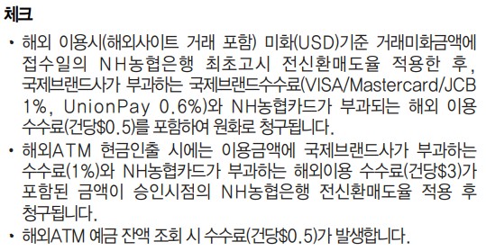 실제로 규정을 보면 다른 카드들보다 해외이용 수수료가 더 비싸다는 것을 알 수 있습니다.
