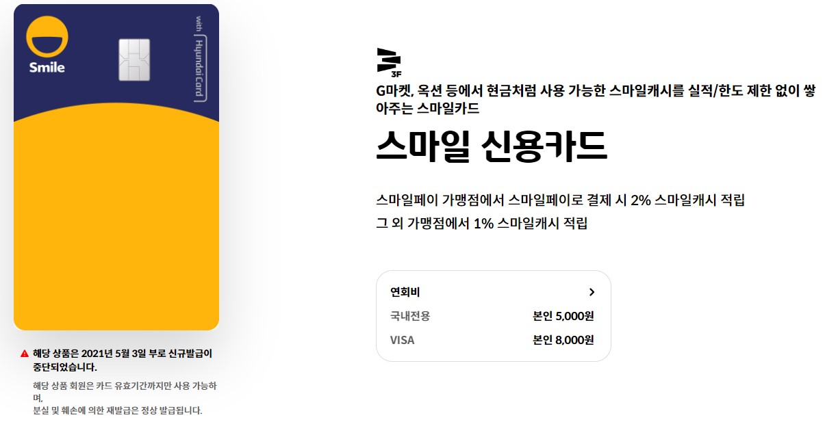 먼저, 현대카드의 스마일카드(신용카드) 입니다.